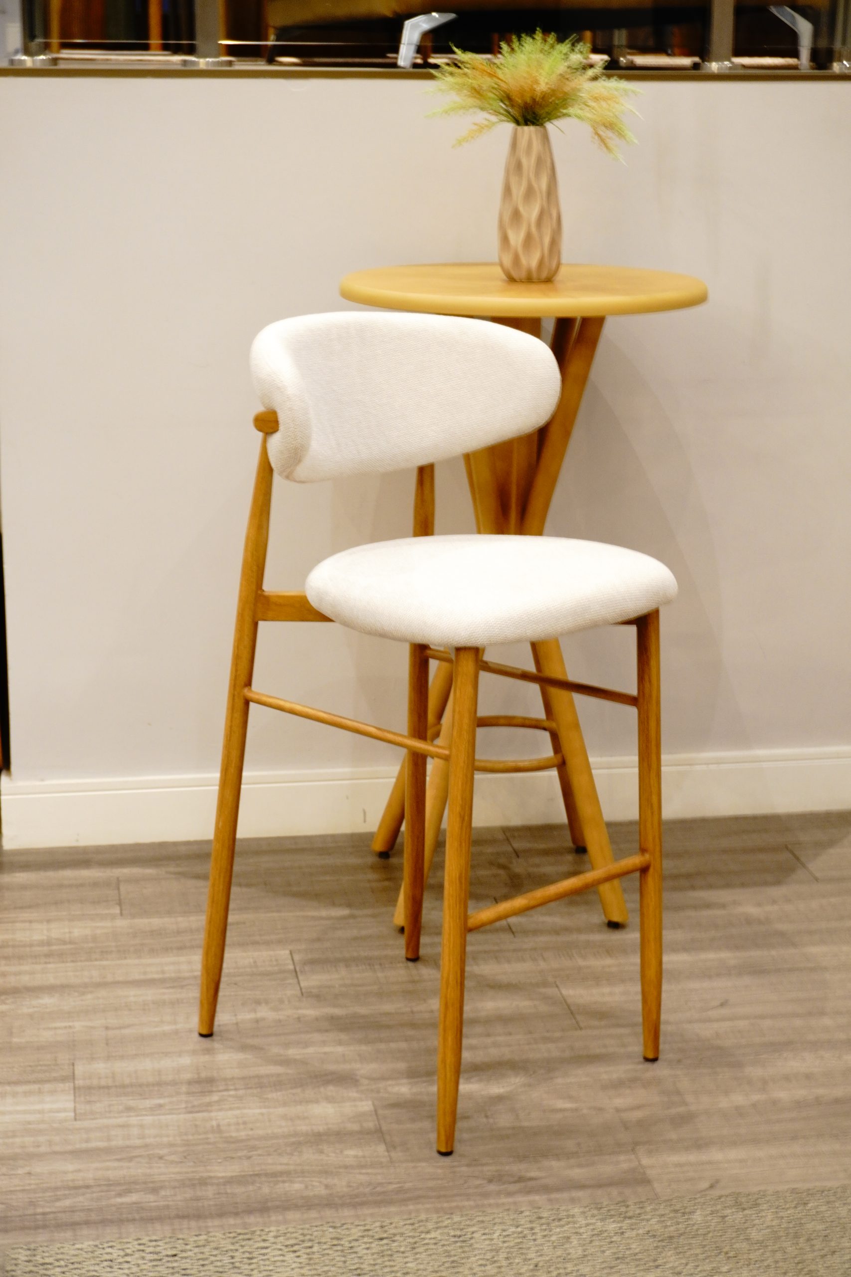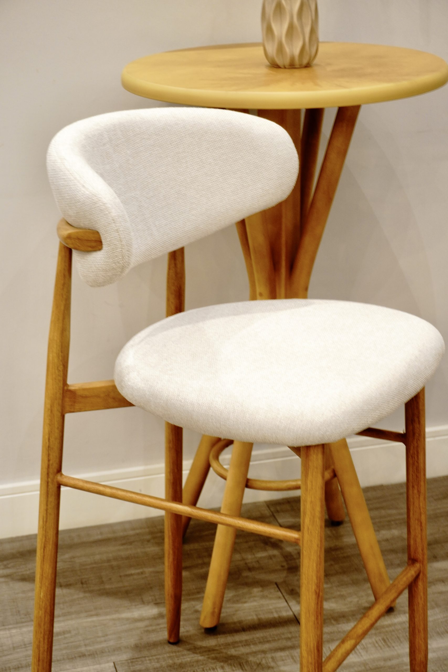 A Banqueta Lucy pode ser produzida nas alturas 65 cm e 75 cm — ideais para bancadas e ilhas — combinando muito bem com cozinhas, áreas gourmet e espaços comerciais.